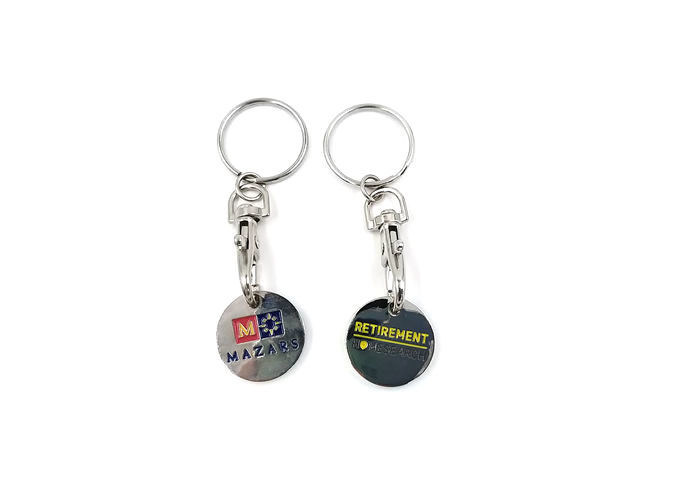شعار مخصص مزدوج الجانب بلاكنك عربة التسوق حامل عملة معدنية سلسلة مفاتيح